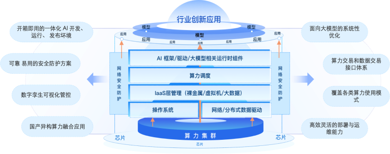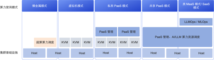 面向不同算力用户的不同应用场景,提供裸金属、虚拟机、容器云、MaaS/SaaS 等不同形态的算力资源。