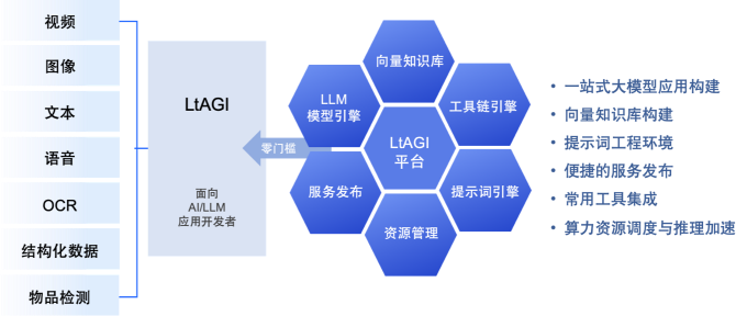 致力于降低人工智能行业应用的开发与落地门槛,提供敏捷易用的应用开发平台,“五分钟内创建和发布大模型应用”。无论您是视频、图像、文本还是语音处理,我们都为您提供了一站式解决方案,包括向量知识库构建、提示词工程环境以及便捷的服务发布。