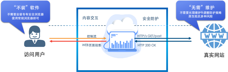 对用户透明的安全防护:用户不需要安装专有安全终端软硬件,使用常规浏览器即可享受安全防护。
